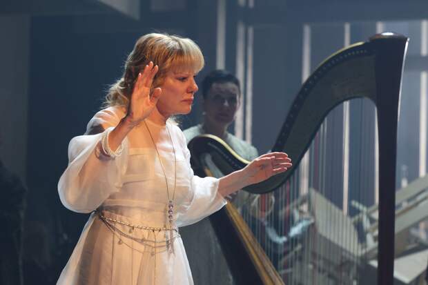 Александра Захарова воплощает Арфистку, которая, подобно внимательному Ангелу-Хранителю, бережёт дух Оркестра и дипломатично сглаживает разного рода конфликты.